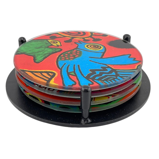 Corneille Bird Paintings Bold Colors Dream Bar Drink Glass Coasters Set of 4