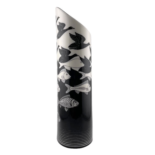 Escher Air Water Birds Fish Tessellations Ceramic Oval Flower Vase