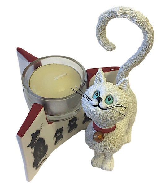Dubout Cat and Kittens in a Row l'Alignment Pictured on Ceramic Tealight Candleholder