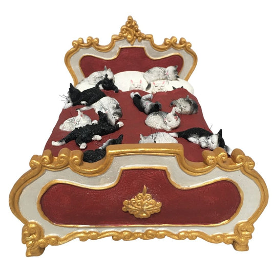 Dubout Cats Sleeping on Gold and Red Fancy Bed Figurine Statue