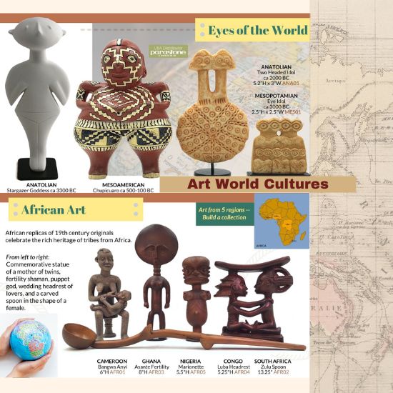 World Art is a broad term that encompasses various societies around the globe. When highlighted together, it reminds us of how culturally rich our world is. In this assortment, you find Mesopotamian, Etruscan (early Greek), African, Precolumbian, and Prehistoric, and Japanese.