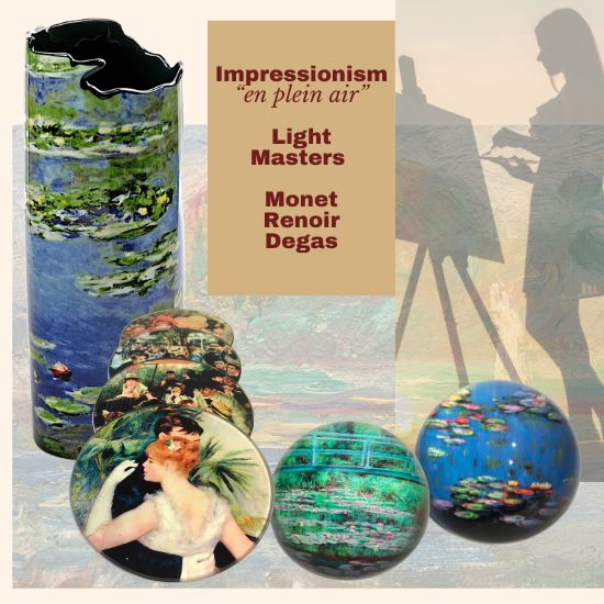The Impressionist Painters wanted to capture the fleeting light, with rapid brushstrokes and in elementary colors without worrying about the exactness of the representation of shapes. They worked en plein air (outdoors) which had become possible because paint was now available in tubes). They focused on daily life scenes without symbolism or an underlying message. The founders of French Impressionism are: Monet, Renoir, Pisarro, Sisley, Morisot, Caillebotte, and Degas.